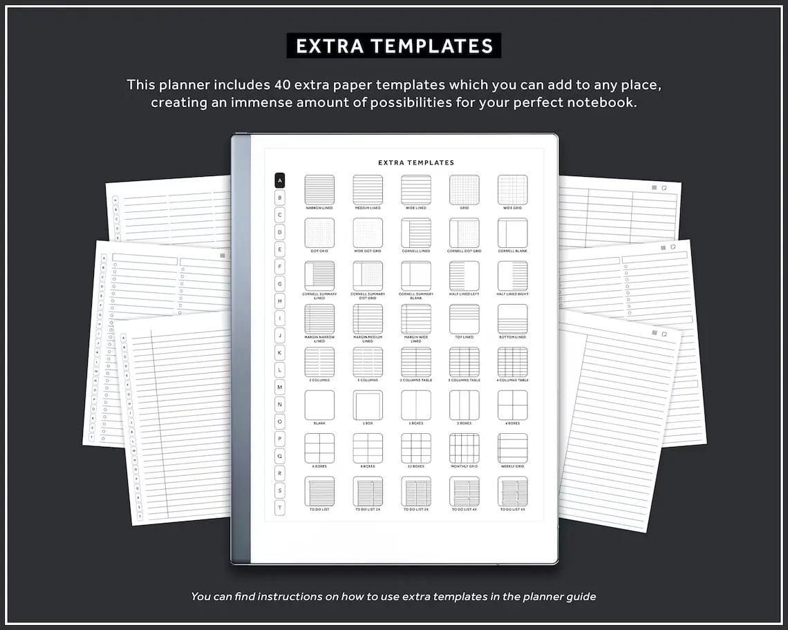 To enhance your customization experience, our notebook also includes an additional 40 paper templates, enabling endless possibilities for creating your ideal notebook.