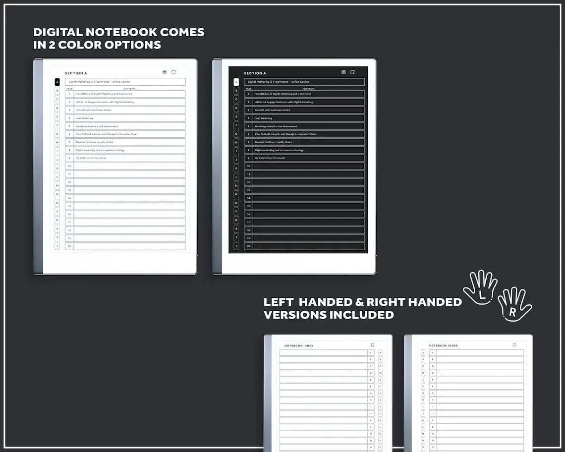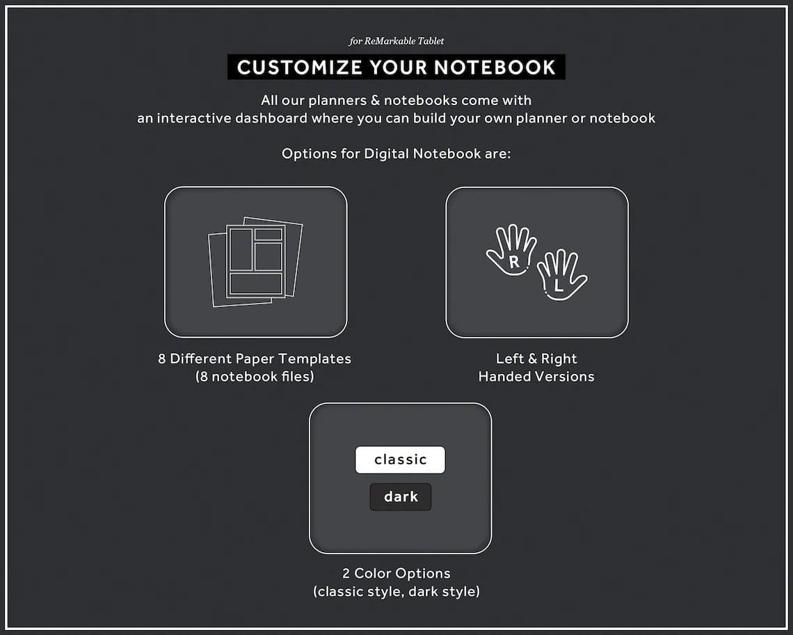 Experience the pinnacle of digital notebook customization with our offering. Our Digital Notebook sets the standard for adaptability and user preference among Remarkable and other E-ink tablets. Purchase now and download your preferred version in a matter of minutes!