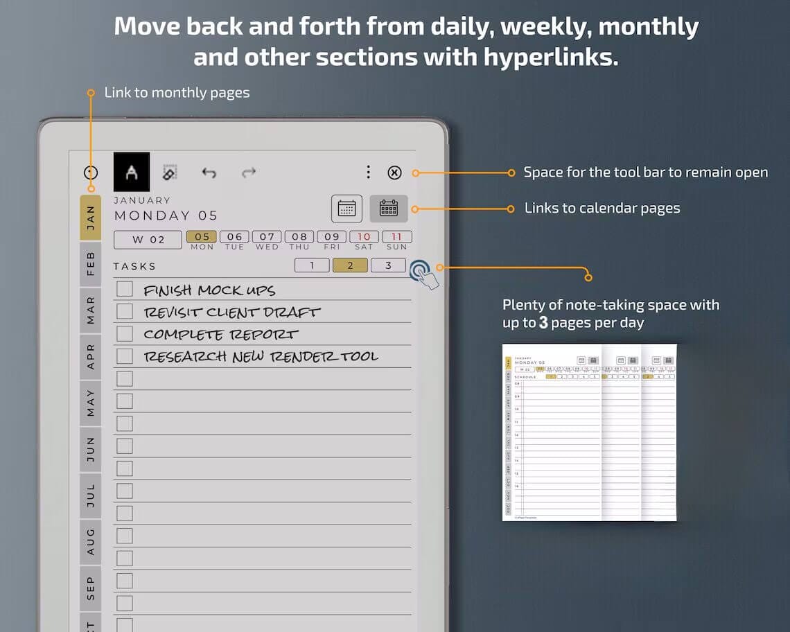 This 2025–2026 Daily Planner is designed exclusively for the reMarkable Paper Pro Move, turning your device into the ultimate tool for staying organized, focused, and productive.